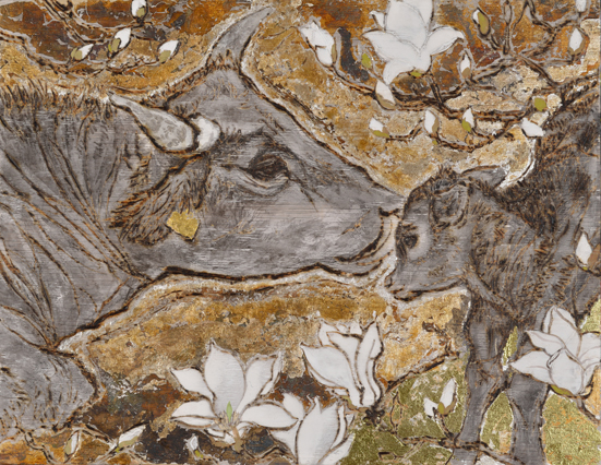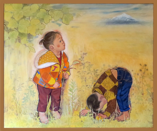 女子美術大学(短)卒業。日本画家中島清之・千波に師事。1992年;第10回上野の森美術館大賞展大賞、第77回日本美術院展入選。2015年以降福島に通い、東日本大震災原発事故で被曝した牛を描く。個展多数開催。近年の題材は聖書の一場面。姦淫の罪を犯した女を描いた[群像・ヨハネ8章―罪なき者これを打てー](写真1枚目)では、人々に足りない愛と赦し、寛容を示したキリストを伝えたいと願う。描くことで、福音を運ぶ。